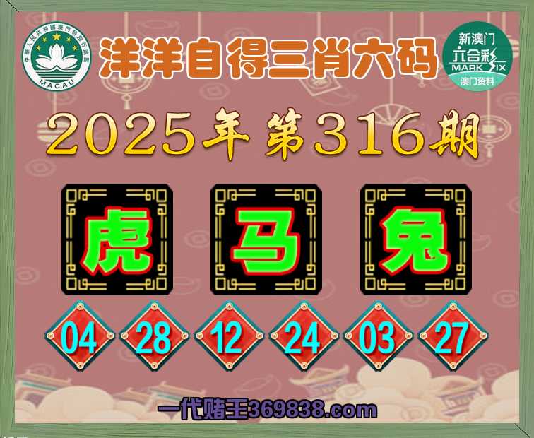 316期:《洋洋自得》 🌸三肖六码🌸【虎兔】开:马24