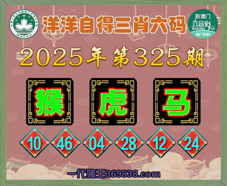 325期:《洋洋自得》 🌸三肖六码🌸【猴马】开:虎04